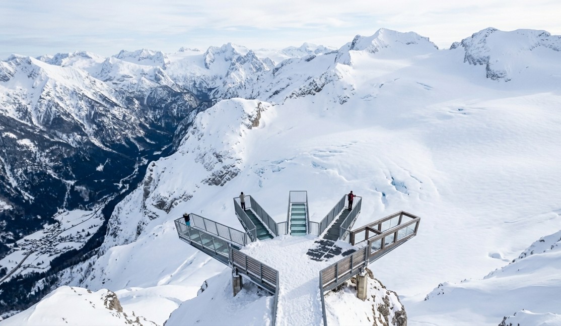 אם אנחנו מחפשים את השלג שנשאר כמעט כל השנה עם הנוף הכי מטורף באלפים, זה המקום. התצפית נמצאת על הר הדאכשטיין (Dachstein), מעל העיירה הלשטאט שדיברנו עליה.