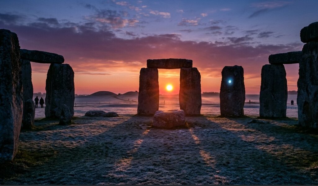 הזווית של GETYA: מעניין לגלות שדווקא היום הקצר בשנה (חורף) היה החשוב ביותר. האדריכלים הקדומים כיוונו את המבנה כך שהשמש השוקעת ביום הכי קצר תעבור בדיוק בין האבנים המרכזיות. זה היה רגע של תקווה – הניצחון של האור על החושך בשיא החורף האנגלי הקר.